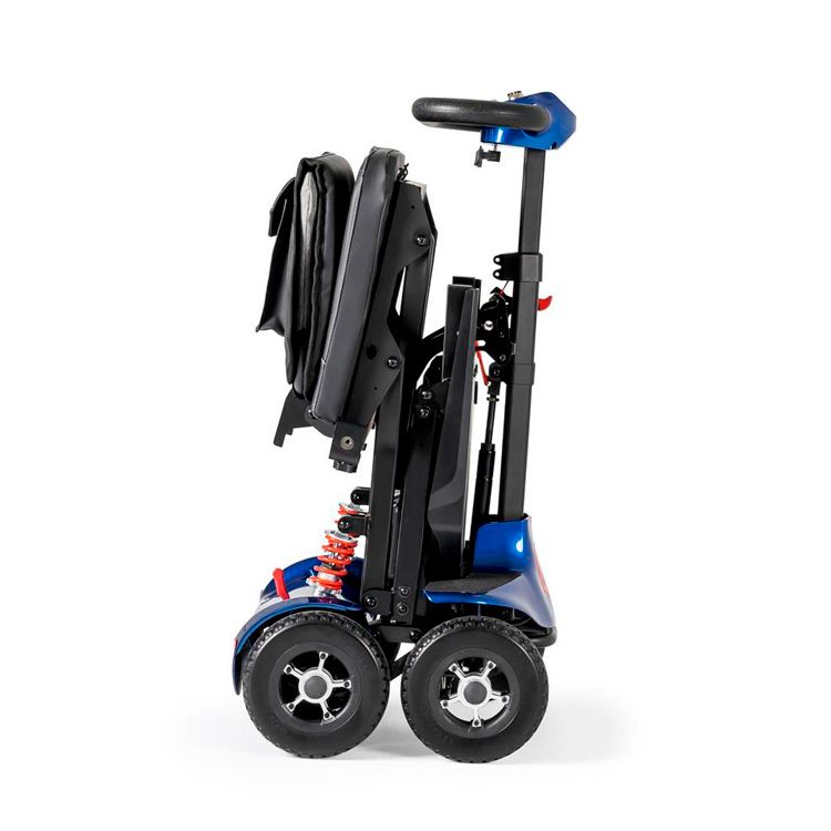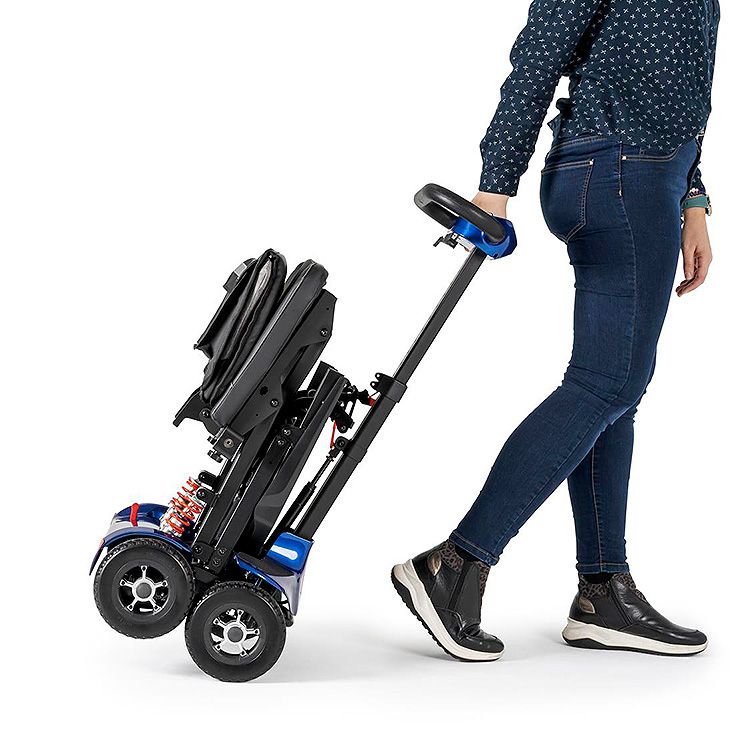 Un scooter fácil de transportar ya que una vez plegada sus 4 ruedas permiten moverla como un trolley.