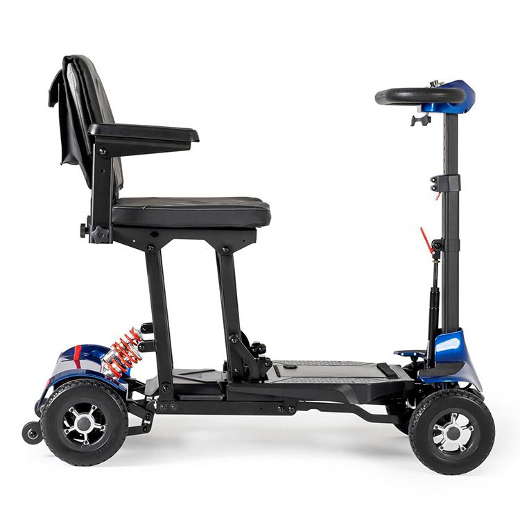Dispone de sistema de amortiguación trasera regulable. Sus reposabrazos ajustables en altura y anchura permiten adaptar la scooter al usuario.